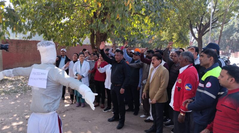 जीएमसीएच ज्वाइंट एक्शन कमेटी ने चंडीगढ़ प्रशासन के खिलाफ किया प्रदर्शन, जलाया पुतला