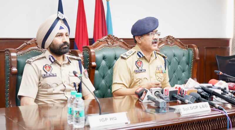 चंडीगढ़, 8 अप्रैल (सीनियर ब्यूरो चीफ: नरेन्द्र चावला) मुख्यमंत्री भगवंत सिंह मान के दिशा-निर्देशों पर पंजाब को सुरक्षित प्रदेश बनाने की मुहिम के तहत पंजाब पुलिस को एक बड़ी सफलता हाथ लगी है। जलंधर में भाजपा नेता मनोरंजन कालिया के घर पर हुए ग्रेनेड हमले के मामले को पंजाब पुलिस ने महज 12 घंटों में सुलझाते हुए दो आतंकवादियों को गिरफ्तार कर लिया है। यह जानकारी स्पेशल डीजीपी कानून और व्यवस्था अर्पित शुक्ला ने मंगलवार को चंडीगढ़ में आयोजित प्रेस कॉन्फ्रेंस में दी।
