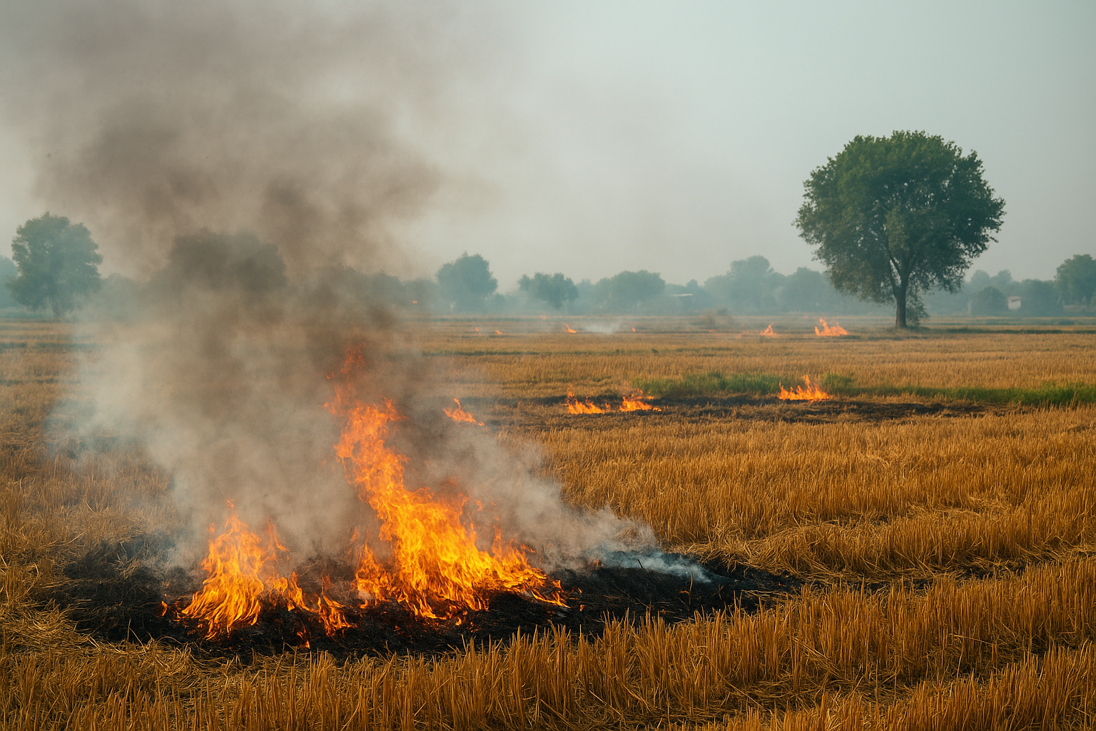 पंजाब में 147 खेतों में आग — पराली जलाने की घटनाओं में रिकॉर्ड वृद्धि